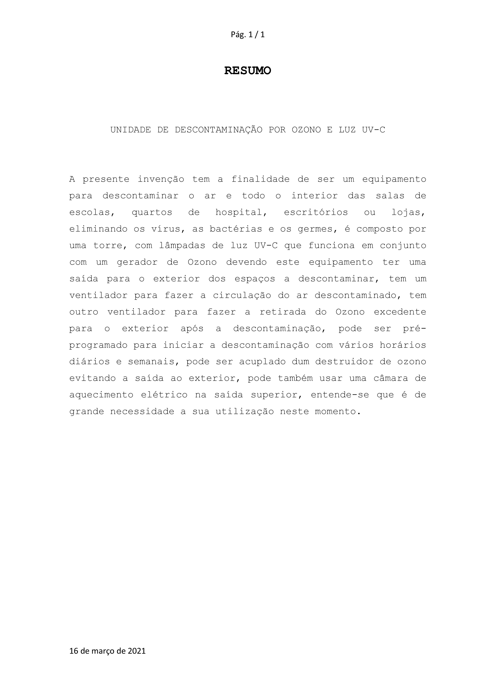 Protótipo Máquina Descontaminação UV-C com Ozono