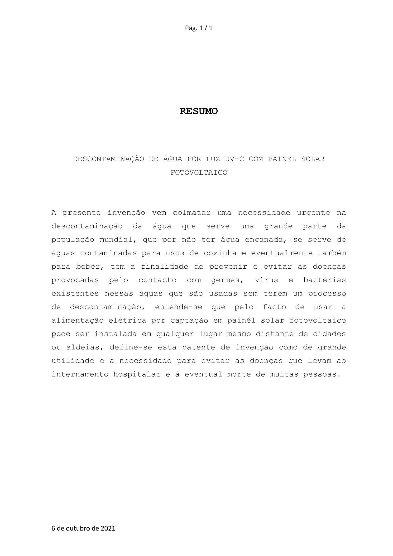 DESCONTAMINAÇÃO DE ÁGUA POR PAINEL SOLAR
