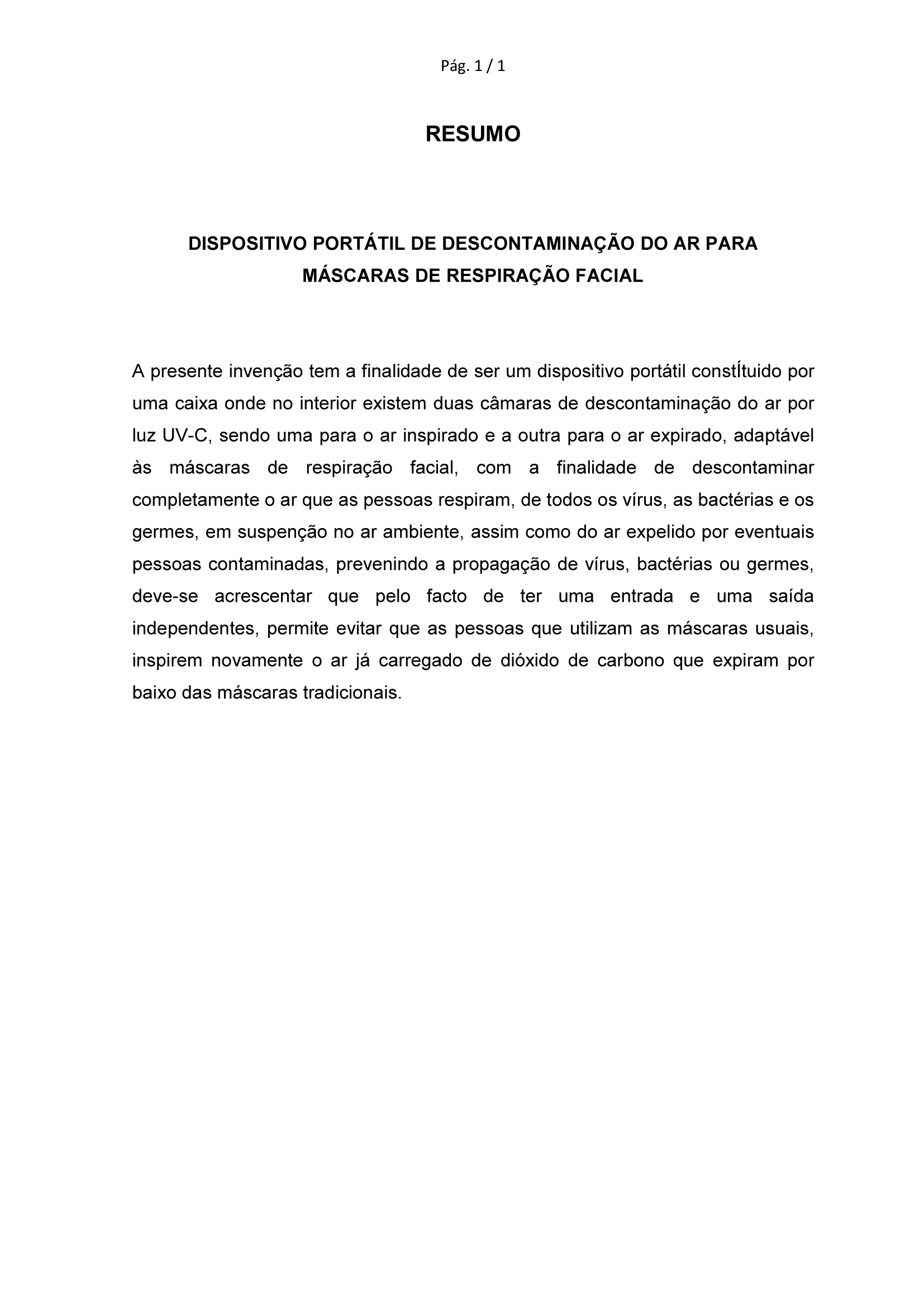 DESCONTAMINAÇÃO PARA MÁSCARAS FACIAIS